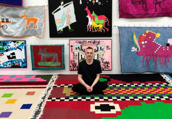 Bota pikturale e Jakup Ferrit (i lindur në vitin 1981) është përplot ngjyra dhe plot krijesa të lumtura. Njerëzit, kafshët dhe krijesat e kombinuara bëjnë gjimnastikë, ngasin biçikleta ose lëvizin nëpër tablotë e pikturave, me një trotinet, thuhet në prezantimin që galeria i bën ekspozitës së piktorit nga Kosova. “Mbi të gjitha, ato bëhen bashkë: jashtë për një piknik, në tryezën familjare, për të kërcyer, për të bërë muzikë ose për të luajtur shah në park”.