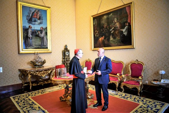 Kryeministri, Ramush Haradinaj, po qëndron për vizitë zyrtare në Vatikan, ku është pritur në takim nga Sekretari shtetit i Vatikanit, Kardinali Pietro Parolin.
