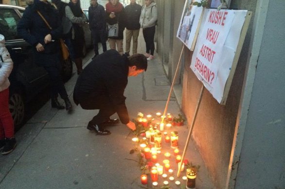Dhjetëra bashkatdhetarë shqiptarë në Vjenë të Austrisë të hënën në mbrëmje kanë bërë homazhe dhe kanë ndezur qirinj para Ambasadës së Kosovës në Austri. Në këtë mënyrë ata kanë shprehur dhembjen për Astrit Deharin, aktivistin e Vetëvendosjes i cili ndërroi jetë të shtunën në qendrën e paraburgimit në Prizren.