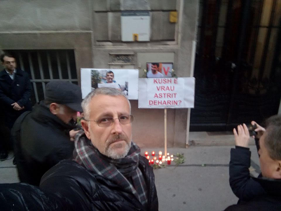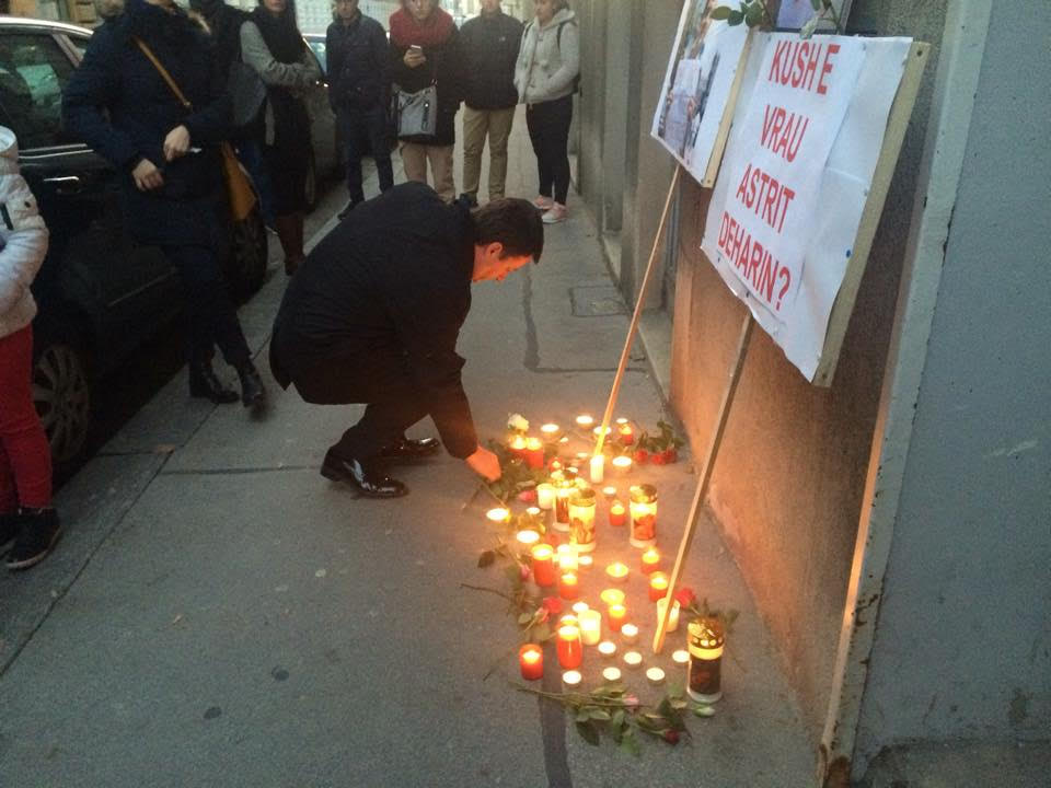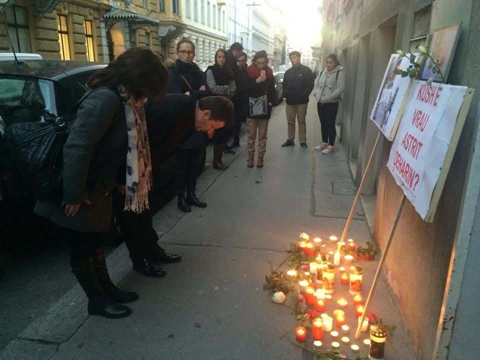 Dhjetëra bashkatdhetarë shqiptarë në Vjenë të Austrisë të hënën në mbrëmje kanë bërë homazhe dhe kanë ndezur qirinj para Ambasadës së Kosovës në Austri. Në këtë mënyrë ata kanë shprehur dhembjen për Astrit Deharin, aktivistin e Vetëvendosjes i cili ndërroi jetë të shtunën në qendrën e paraburgimit në Prizren.