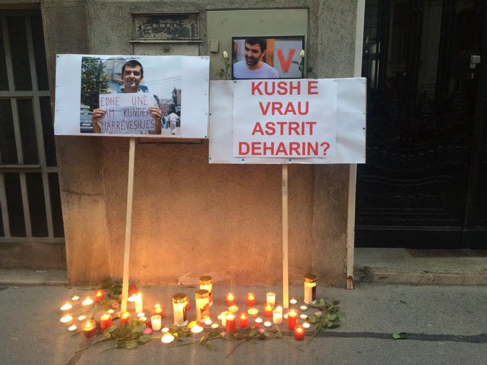 Homazhe me ndezje qirinjsh për Astrit Deharin para Ambasadës së Kosovës