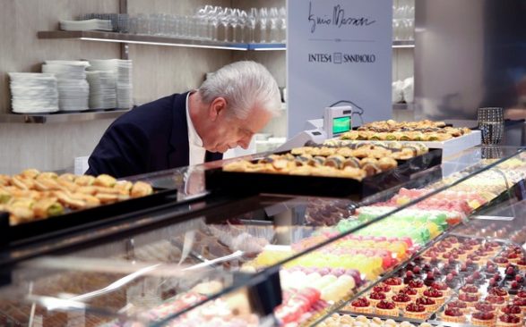 Ideja që banka Intesa Sanpaolo të bashkëpunojë me Massarin është pjesë e rinovimit 500 milionë eurosh që degët e bankës të shndërrohen në pastiçeri moderne.