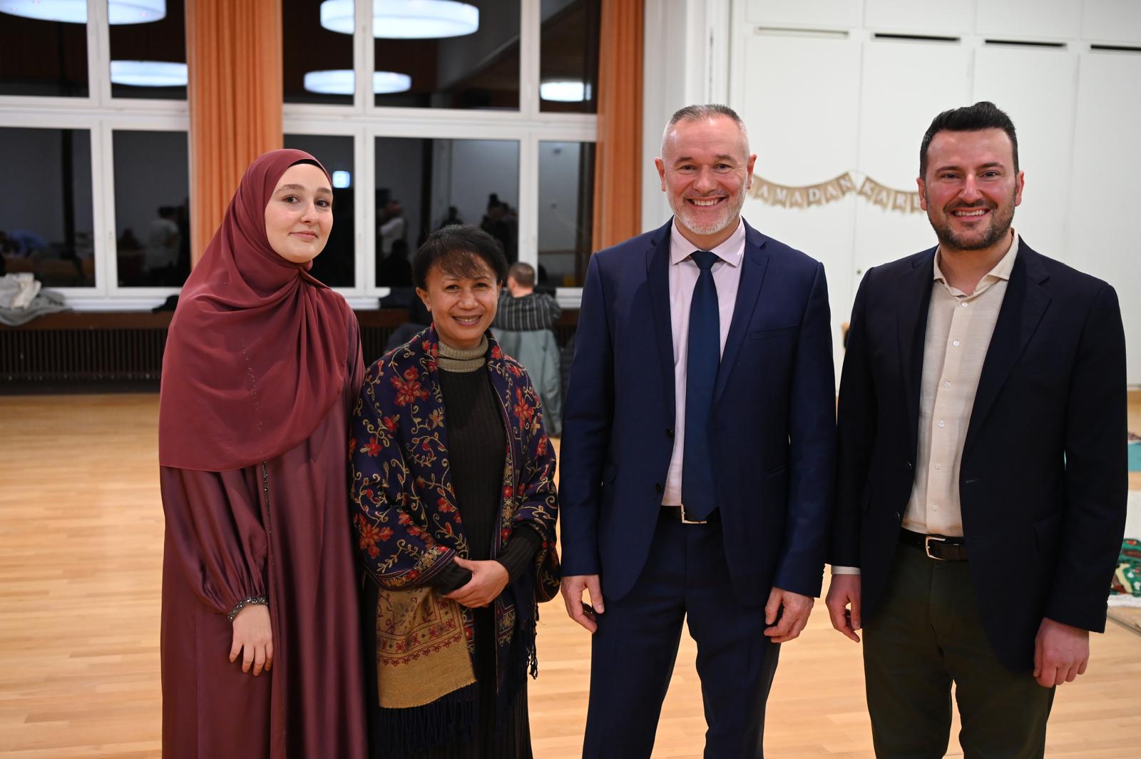 Mbrëmjen e hapi imami Fahredin Bunjaku me një fjalë përshëndetëse në gjuhën shqipe dhe gjermane. Ai theksoi rëndësinë e agjërimit dhe muajit të shenjtë të Ramazanit, duke kujtuar se ky muaj për besimtarët myslimanë është kohë reflektimi shpirtëror, solidariteti dhe afrimi mes njerëzve.