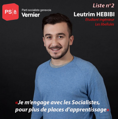 Leutrim Hebibi: Duke biseduar me anëtarët dhe simpatizantët e Partisë Socialiste dhe me shumë bashkëkombës të mi në komunën tonë Vernier, me kërkesën e tyre vendosa të kandidohem për këshilltar komunal. Me diturinë dhe eksperiencën që e kam fituar gjatë shkollimit, do ta shndërroj në energji pozitive për t’i mbrojtur dhe përfaqësuar interesat e të gjitha komuniteteve në komunë. Po ashtu vendosa të kandidoj sepse mendoj që ka ardhur koha që edhe ne, komuniteti shqiptar, t’i kemi njerëzit tanë në institucione komunale dhe kantonale, e më vonë pse jo edhe konfederale.