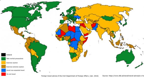 Zvicra është e rrezikshme sikur Brazili, Kameruni, apo Afrika e Jugut! Nuk ka rëndësi pse në ndonjërin nga këto vende shkalla e vrasjeve është 30 herë ose madje dhe 45 herë më e lartë se ajo në Zvicër. Për Ministrinë e Jashtme të Irlandës Zvicra hyn në listën e vendeve me rrezik nga terrorizmi dhe për këtë arsye ajo u rekomandon qytetarëve irlandezë që ta evitojnë udhëtimin në Zvicër ose nëse patjetër duhet të udhëtojnë, atëherë të kenë kujdes të veçantë!