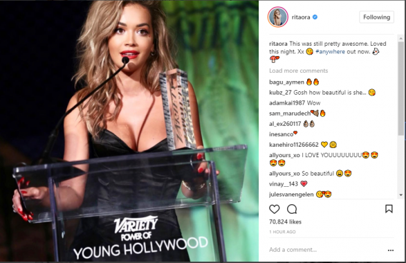 Sa i përket kësaj Rita në rrjetet sociale ka shkruar se i pëlqeu shumë mbrëmja e ndarjeve të çmimeve.
