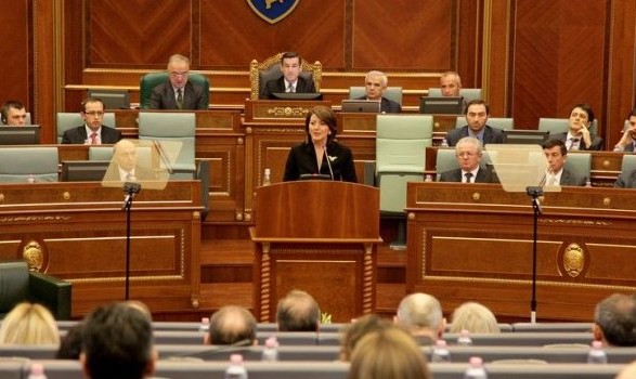 Në fjalimin e saj vjetor në Parlamentin e Kosovës, ajo tha se bllokada gjashtëmuajshe politike zbuloi të metat e demokracisë së re dhe identifikoi paqartësitë dhe mangësitë e një Kushtetute të aprovuar, por të paprovuar në jetën politike.