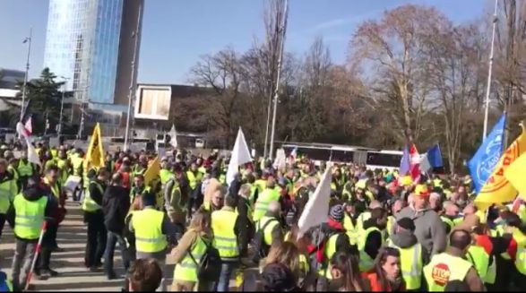 Disa qindra protestues të “Jelekëve të verdhë” (gilets jaunes) nga Franca u mblodhën jashtë selisë së Kombeve të Bashkuara në Gjenevë të mërkurën për të protestuar kundër dhunës policore në shtëpi.