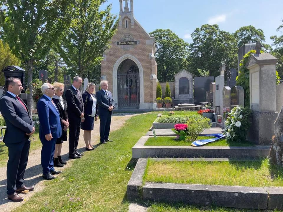 Ambasadorët Lulzim Pllana dhe Roland Bimo, kurora lulesh te varri i ambasadorit Rohan