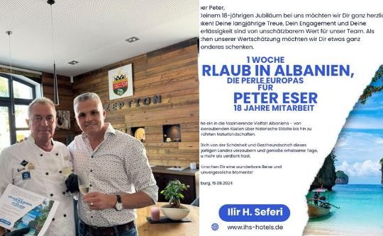 - Shefi shqiptar shpërblen punëtorin e tij gjerman me pushime në ShqipëriBashkatdhetari ynë, Ilir Hajzer Seferi, afarist e veprimtar i mirënjohur në...