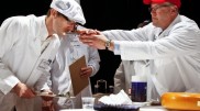 Micheline Calmy-Rey sulmohet me tortë në fytyrë