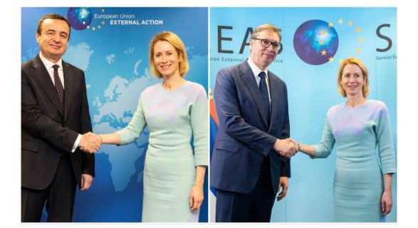 “I takova presidentin Vuçiq dhe kryeministrin Kurti. E vetmja rrugë drejt anëtarësimit në BE është përmes normalizimit të raporteve mes tyre, në bazë të Marrëveshjes së Ohrit. Mirëprita gatishmërinë e tyre për të bashkëpunuar pas sulmit të fundit terrorist. Kryesit duhet të përballen me drejtësinë”, ka shkruar Kallas të martën në “X”, pas takimeve të ndara me liderët e Kosovës dhe të Serbisë.