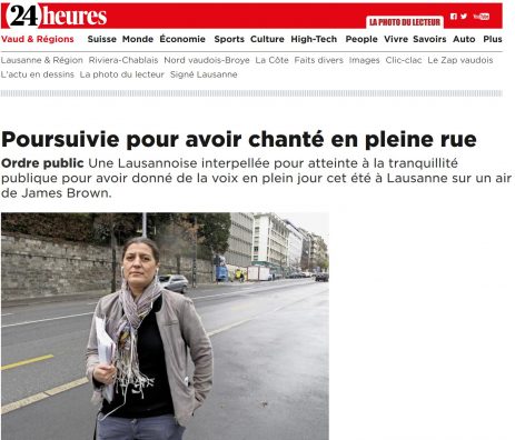 30 vjeçarja me emrin Nekibe, shqiptare nga Kosova kishte kënduar këngën e njohur “I feel good” të James Brown dhe përcjellë këndimin me vallëzim, derisa ishte duke hipur në metronë e Lozanës. Këndimi me zë në ambient publik, sipas policëve të këtij qyteti, përbën shkelje të rendit dhe qetësisë publike, prandaj ata kanë ushtruar kallëzim penal ndaj Nekibes, shkruan 20minutes.ch.