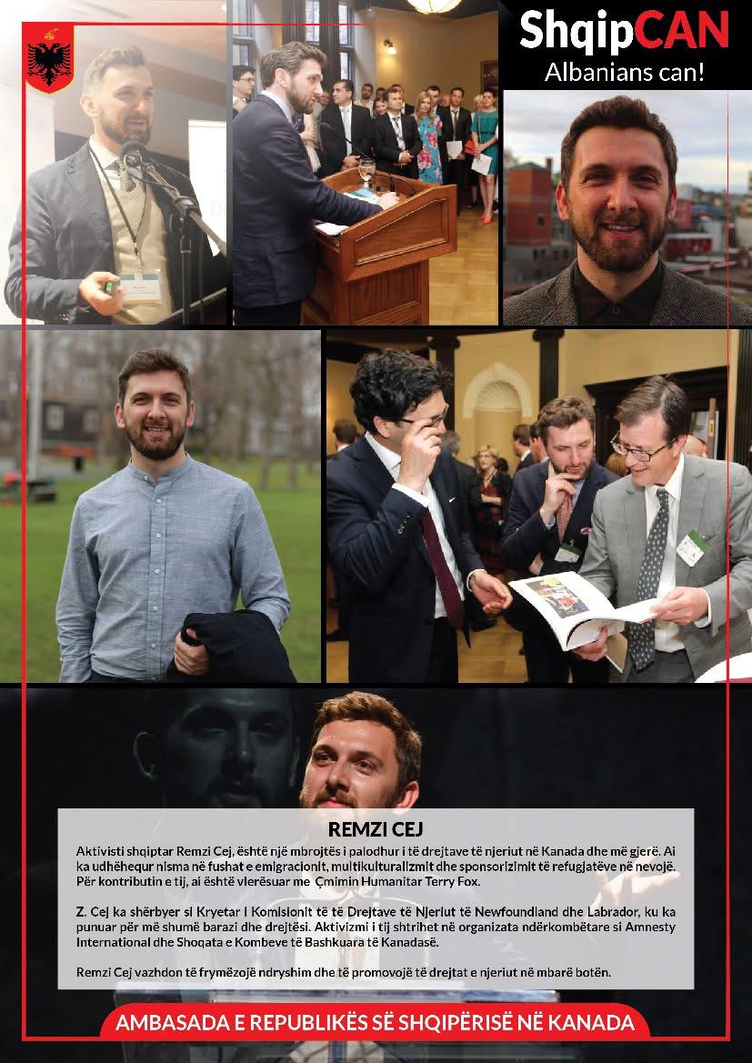 Shqiptari nga Kosova, Remzi Cej është një mbrojtës të drejtave të njeriut, me një eksperiencë në fushën e Emigracionit dhe Multikulturalizmit në Newfoundland dhe Labrador, në pozicionin e Drejtorit por edhe Kryetar i Komisionit të të Drejtave të Njeriut të Newfoundland dhe Labrador, përcjell albinfo.ch.