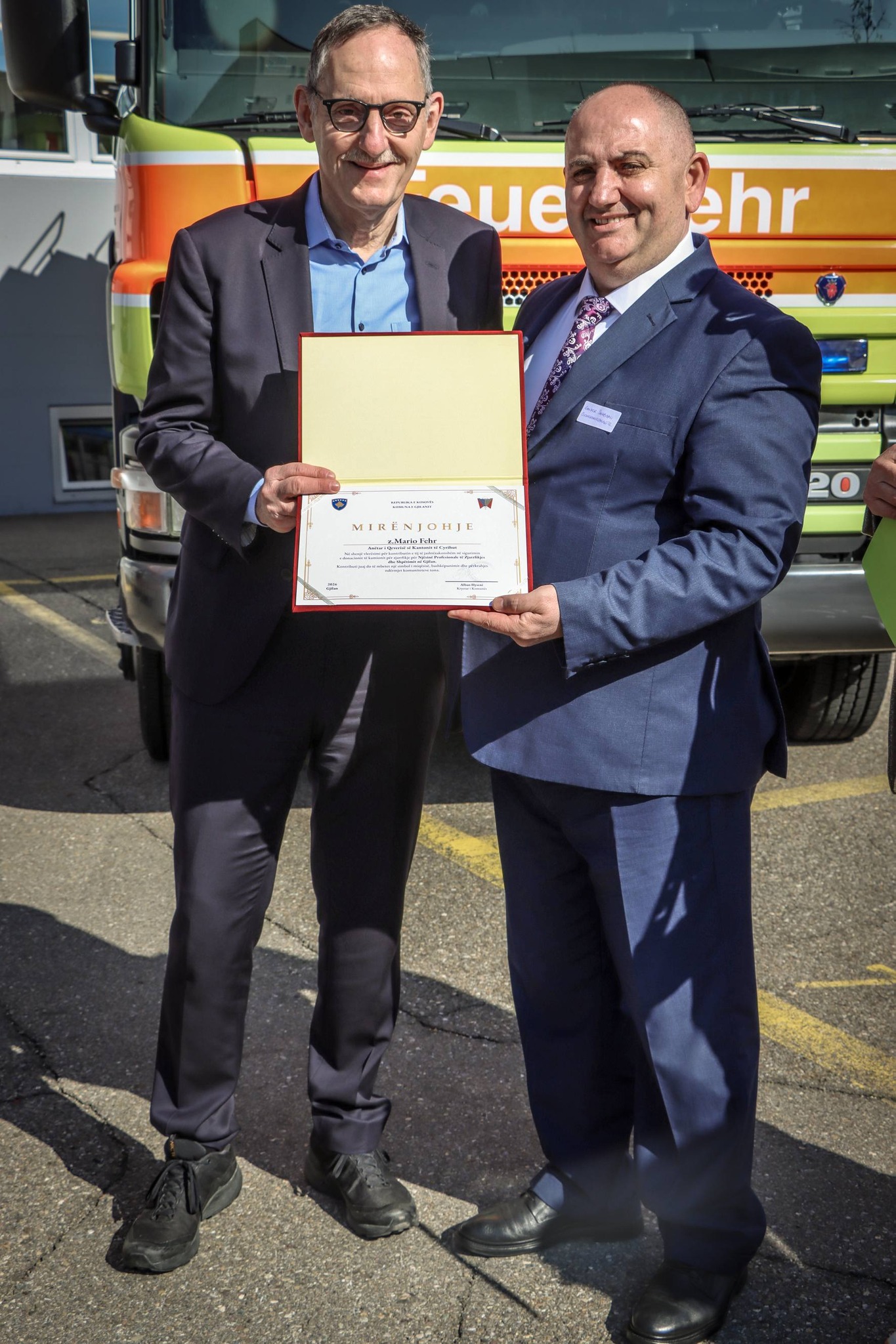 Me iniciativën e aktivistit Ilir Tahiri, në bashkëpunim me shoqatën “17 Shkurti” GVZ i kaantonit të Cyrihut i ka dhuruar një automjet zjarrfikës qytetit të Gjilanit.