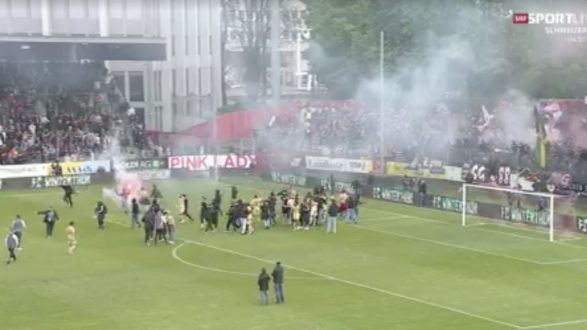 Në vend që të festonin hyrjen e ekipit të tyre në finale, disa kaotikë të Servette shpërthyen plotësisht siguresat e tyre pas bilbilit të fundit. Dikush hedh një pishtar të ndezur direkt në sektorin e familjes së FC Winterthur. Një dëshmitar okular raportoi se si mbështetësit u shpërndanë të tronditur. Me shumë fat, asnjë nga të pranishmit nuk do të lëndohet rëndë.
