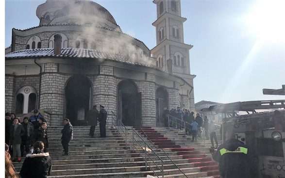 Katedralja në Korçë përfshihet nga zjarri