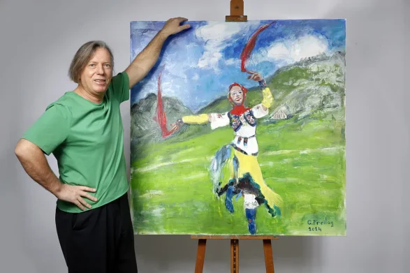 Në krijimin e tij më të fundit, “K’cimi i Tropojës”, piktori shqiptar që jeton në Austri, Gazmend Freitag eksploron bukurinë magjepsëse të valles së famshme shqiptare