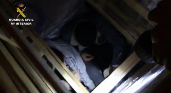 Pas ndalimit të kamionit, zyrtarët e Gardës Civile Spanjolle i gjetën 4 shqiptarët të fshehur midis paletave prej druri brenda një kamioni në tragetin që shkonte për Irlandë.