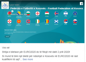 Kosova do ta ketë mësuar fatin e vet për Euro 2020, kur biletat të dalin në shitje më 2 prill.