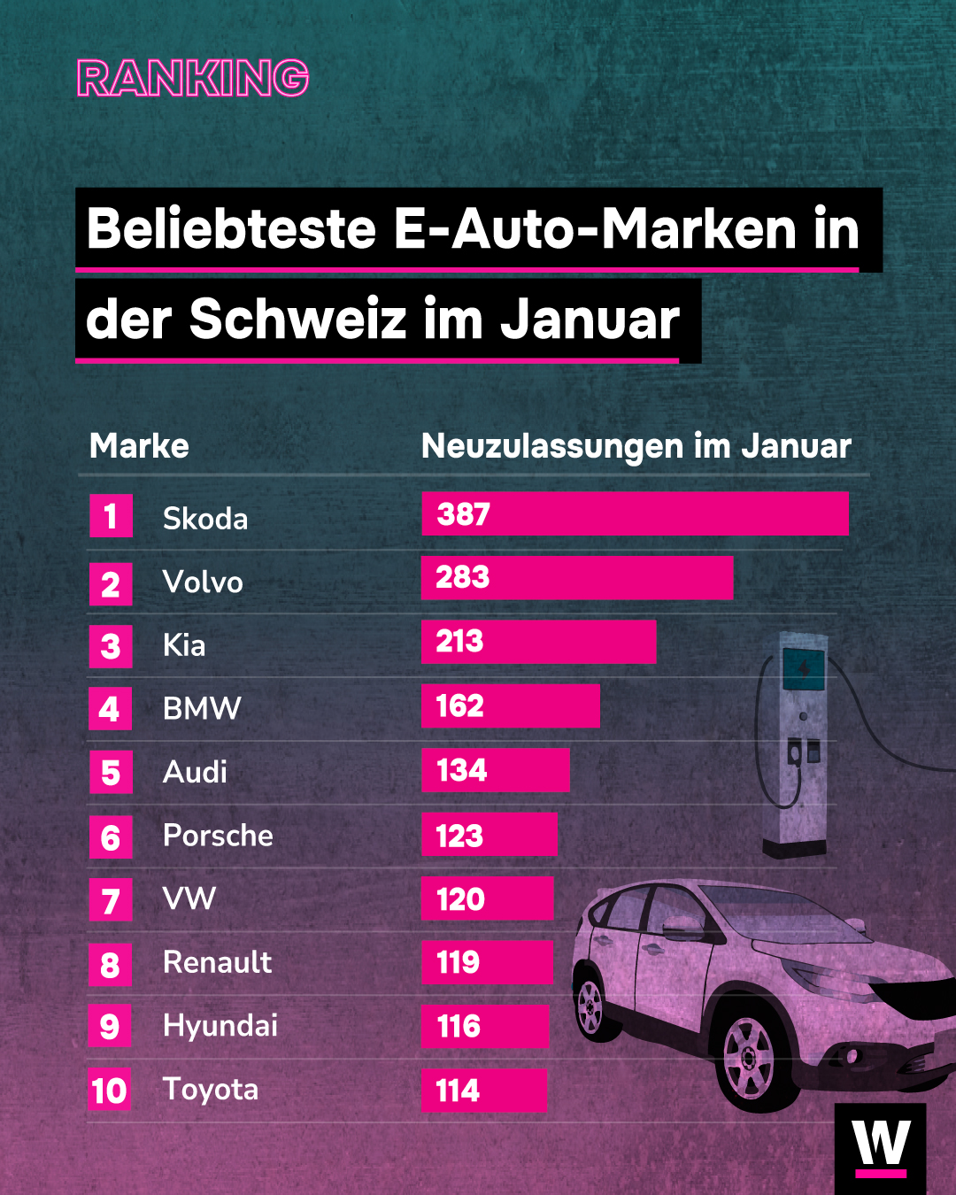Në vitin e ri, Skoda, Volvo dhe Kia po bëjnë një fillim të shkëlqyer në Zvicër - dhe prodhuesi më i madh i makinave në botë po fillon gjithashtu. Por kur bëhet fjalë për lëvizshmërinë elektrike, vendet e tjera janë shumë përpara nesh