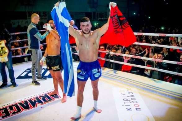 Kik-boksieri Florian Marku, me flamur shqiptar e grek