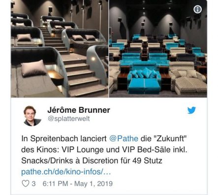 Venanzio Di Bacco, Drejtori i Përgjithshëm i Pathé Sëitzerland,tha që konsumatorët mund të sigurohen se shtretërit janë rregulluar menjëherë pas çdo shfaqje filmash: “Aspekti higjienik është shumë i rëndësishëm për ne”, tha ai.