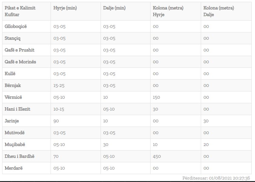 Më poshtë gjeni gjendjen në të gjitha pikat kufitare të vendit.