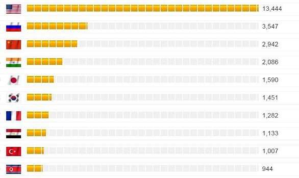 Sikurse në çdo ranglistë të forcave të armatosura edhe këtu prin SHBA-ja dhe menjëherë pas saj vijnë Rusia dhe Kina. Por, radhitja është bërë mbi bazën e 40 kritereve