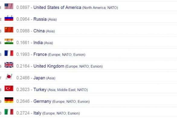 “Global Firepower Index” ka bërë një ranglistë të ushtrive të 126 vendeve të botës, sipas fuqisë së tyre në njerëz dhe në armatim. Sikurse në çdo ranglistë të forcave të armatosura edhe këtu prin SHBA-ja dhe menjëherë pas saj vijnë Rusia dhe Kina.