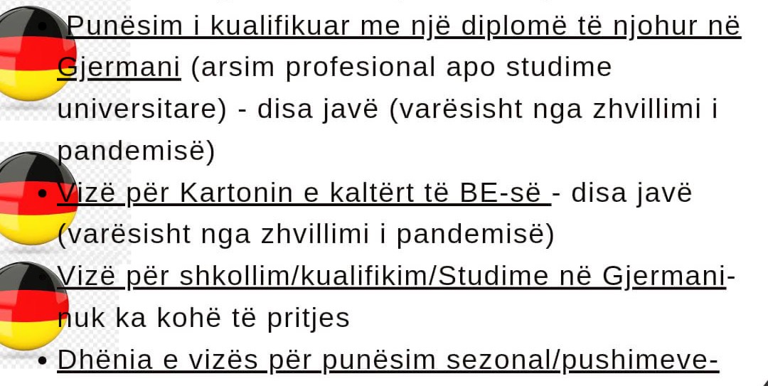 Tashmë dihet se më 1 janar 2021 në Gjermani kanë hyrë në fuqinë e rregulla të reja të punës nëpërmjet të ashtuquajturës “Rregullimi për Ballkanin Perëndimor (§ 26 paragrafi 2 Urdhëresa për Punësim). Kjo vazhdon të ketë vlerë për çdo vend të punës – pavarësisht kualifikimit të njohur, transmeton albinfo.ch.