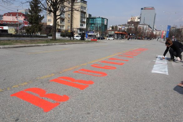 Kolektivi “Marshojmë, s’festojmë” ka organizuar sot aksion simbolik në bulevardin “George W. Bush”, në Prishtinë.