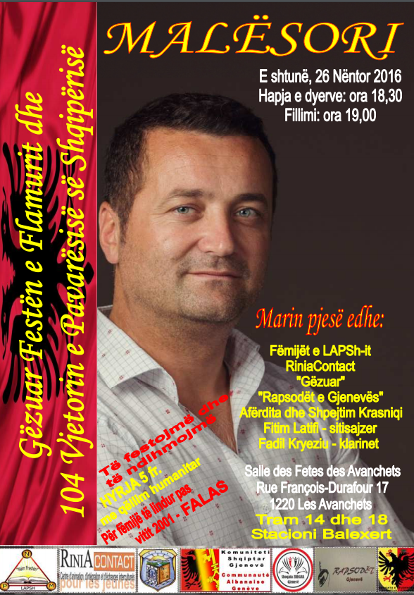 Kremtja e kësaj ngjarje të madhe historike do të mbahet në Gjenevë më 26 nëntor 2016 (e shtunë, ora 19:00) në adresën: Salle des Fêtes des Avanchets, rue François – Durafour 17, 1220 Les Avanchets – Geneve.