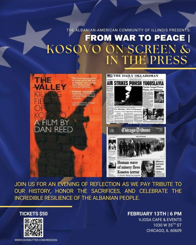 Në një mbrëmje reflektimi dhe lidhjeje me rrënjët, Komuniteti Shqiptaro-Amerikan i Illinois (AACI) do të organizojë një ekspozitë multimediale për nder të Ditës së Pavarësisë së Kosovës. Ekspozita do të sjellë për publikun artikuj të arkivuar, fotografi të rralla dhe dokumente historike që pasqyrojnë periudhën e luftës dhe rrugëtimin drejt paqes, transmeton albinfo.ch.