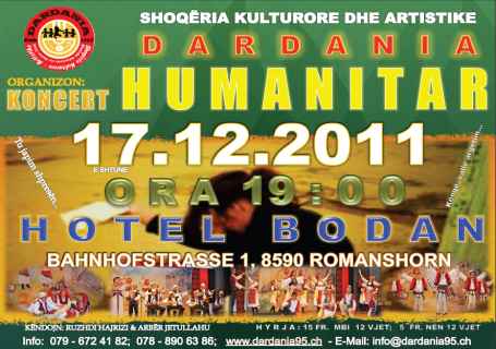 Vlen të theksohet se me gjithë obligimet dhe termineve të mëdha që ka dhe pati kjo shoqëri, me dy koncerte humanitare, tri dasmave, festa e flamurit, mandej koncerti me Ansamblin Kombëtar “SHOTA” e Kosovës, të cilat do të mbahën më 12 dhe 13 dhjetor 2011, në Winterthur dhe Zürich, fundvitin e sivjetëm po e përfundon me këtë koncert humanitar aq të rëndësishëm dhe aq të vendosur për ta përfunduar një kulm mbi kokë të atij fatlumi ose asaj fatlumeje.