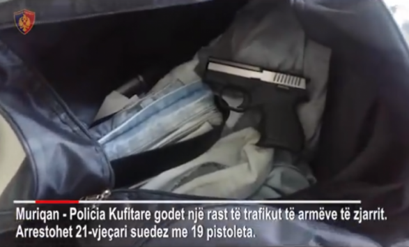 Në PKK Muriqan në dalje gjatë kontrollit të detajuar në vijën e dytë, në çantën e 21 – vjeçarit suedez, i cili udhëtonte si pasagjer në autobuzin e linjës “Kosovë -Gjermani”, u gjetën dhe u sekuestruan në cilësinë e provës materiale 19 armë zjarri tip “pistoletë”, kalibër 7.65.