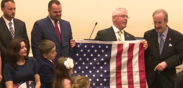 Një flamur që valoi një ditë mbi kupolën e Kongresit amerikan, i’u dhurua veprimtarit shqiptaro-amerikan, Harry Bajraktari, përcjell albinfo.ch.