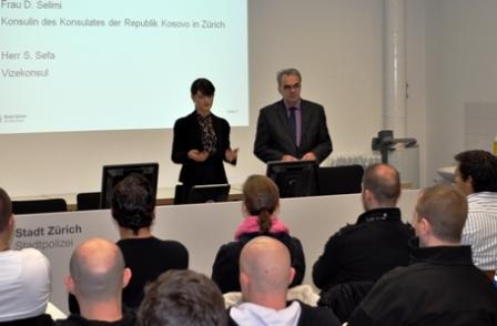 Të enjten, më 10 nëntor Konsullja e Republikës së Kosovës në Cyrih, Dhurata Selimi dhe zëvendëskonsulli Salih Sefa, me ftesë të Policisë së Cyrihut kanë mbajtur një ligjëratë për studentët e vitit të IV të shkollës së Policisë, të Cyrihut.