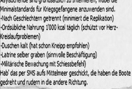 Dy politikanë nga partia e SVP/UDC-së kanë botuar mendime raciste javën e kaluar. Beat Mosimann, një anëtar i SVP/UDC-së së Solothurnit ka thënë nëpërmjet Facebook-ut, si dhe në forumet e ndryshme se ishte për ekzekutimin e disa azilkërkuesve si dhe për internimin e tyre në “një lloj kampi përqendrimi”. Ai gjithashtu ka trajtuar myslimanët si “parazitë”, sipas gazetës gjermanofolëse “Der Sonntag”.