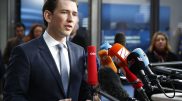 Kancelari austriak, Sebastian Kurz, i shoqëruar nga nënkancelari Werner Kogler, gjatë...