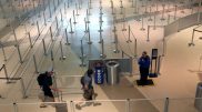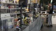 Për të kontrolluar numrin e klientëve në dyqane, punonjësit qëndrojnë para...
