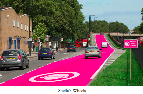 Megjithëse gratë shkaktojnë jo më shumë aksidente në vit sesa burrat, ato sipas propozuesve marrin lëndime më të rënda në aksidente. Propozimi me korsi me ngjyrë vjollce është për t’i mbrojtur ato më mirë. 11.47 miliardë £ llogaritet implementimi i këtij projekti që është në fazën ideore dhe që ka zgjuar debat në Angli.