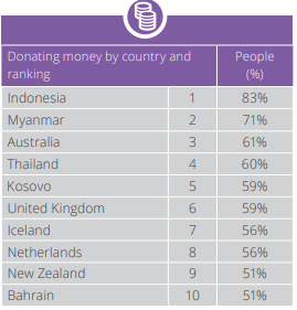 Në raportin e Caf Wold Giving Index, Kosova kësaj radhe ka zënë vendin e 9-të për nga vendet më bamirëse në botë.