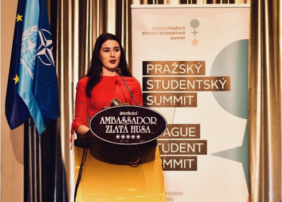 Studentja kosovare e shkencave politike ne Universitetin Karlovi, njëherësh edhe e albanologjisë në Universitetin e Charlesit Blerta Sejdija prezentoi shqiptarët në samitin e NATO-s në Pragë të Çekisë.