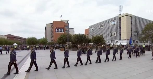 Në ceremoninë e cila u organizua në sheshin e Prishtinës, presidentja e Kosovës Vjosa Osmani-Sadriu theksoi se kjo është një ditë historike për Kosovën.