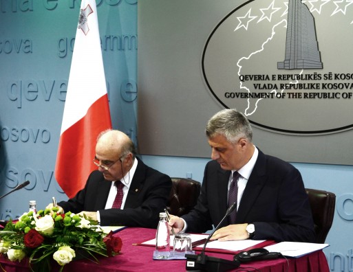 Marrëveshja është nënshkruar nga zëvendëskryeministri i parë, njëherësh ministër i Punëve të Jashtme i Republikës së Kosovës, Hashim Thaçi dhe homologu i tij, ministri i Punëve të Jashtme të Republikës së Maltës, George William Vella. Ky i fundit po qëndron për një vizitë zyrtare në Republikën e Kosovës.