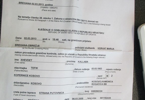 Me këtë informacion u nisa edhe sivjet, më 2 mars 2013, nga Zvicra për në Kosovë. Por me të arritur në kufirin kroat, policia kufitare më ktheu që të marr një vizë në Ambasadën kroate në Lubjanë. Arsyetimi ishte se që nga shkurti ka hyrë në fuqi ndalesa për kosovarët që nuk posedojnë vizë kroate, pavarësisht nëse ata kanë një vizë „Shengen C“.