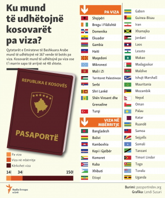 Qytetarët e Kosovës mund të udhëtojnë në 14 vende pa viza, dhe 34 pasi të arrijnë, por shumica janë vende afrikane, që nuk vizitohen shumë nga kosovarët, raporton “Radio Evropa e Lirë”.