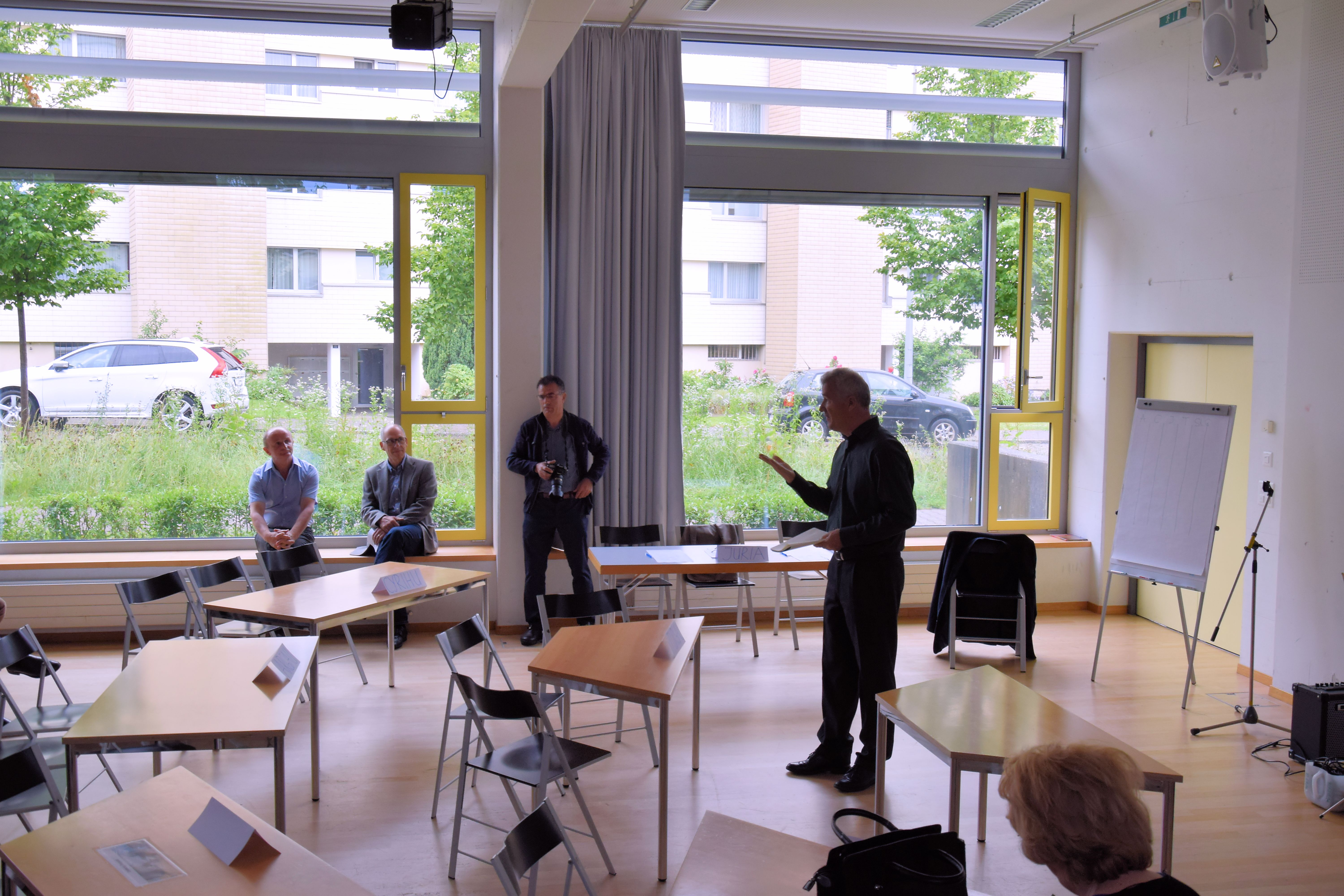 U uroi mirëseardhjen të gjithë pjesëmarrësve drejtori i shkollës dhe miku i qytetarëve shqiptarë zoti Peter Urs me ngrohtësi shpalli të hapur manifestimin. Në urimin e tij ai u foli të pranishmëve për atmosferën festive, për kulturën teatrore të Vindischit, theksoi: „ ..edukimi nuk njeh ndarje dhe kufij. Ai bashkon njerëzit rreth vlerave më të mira“.