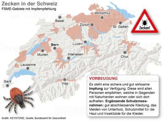 Prania e rriqrave ndjehet kudo në rajonet malore në Zvicër madje pothuajse në të gjithë vendin. Ato arrijnë një lartësi prej rreth 1500 metra mbi nivelin e detit. Çdo e treta rriqër bart patogjenin borreliotik në vetvete. Prandaj, kujdesi është ilaçi më i mirë.